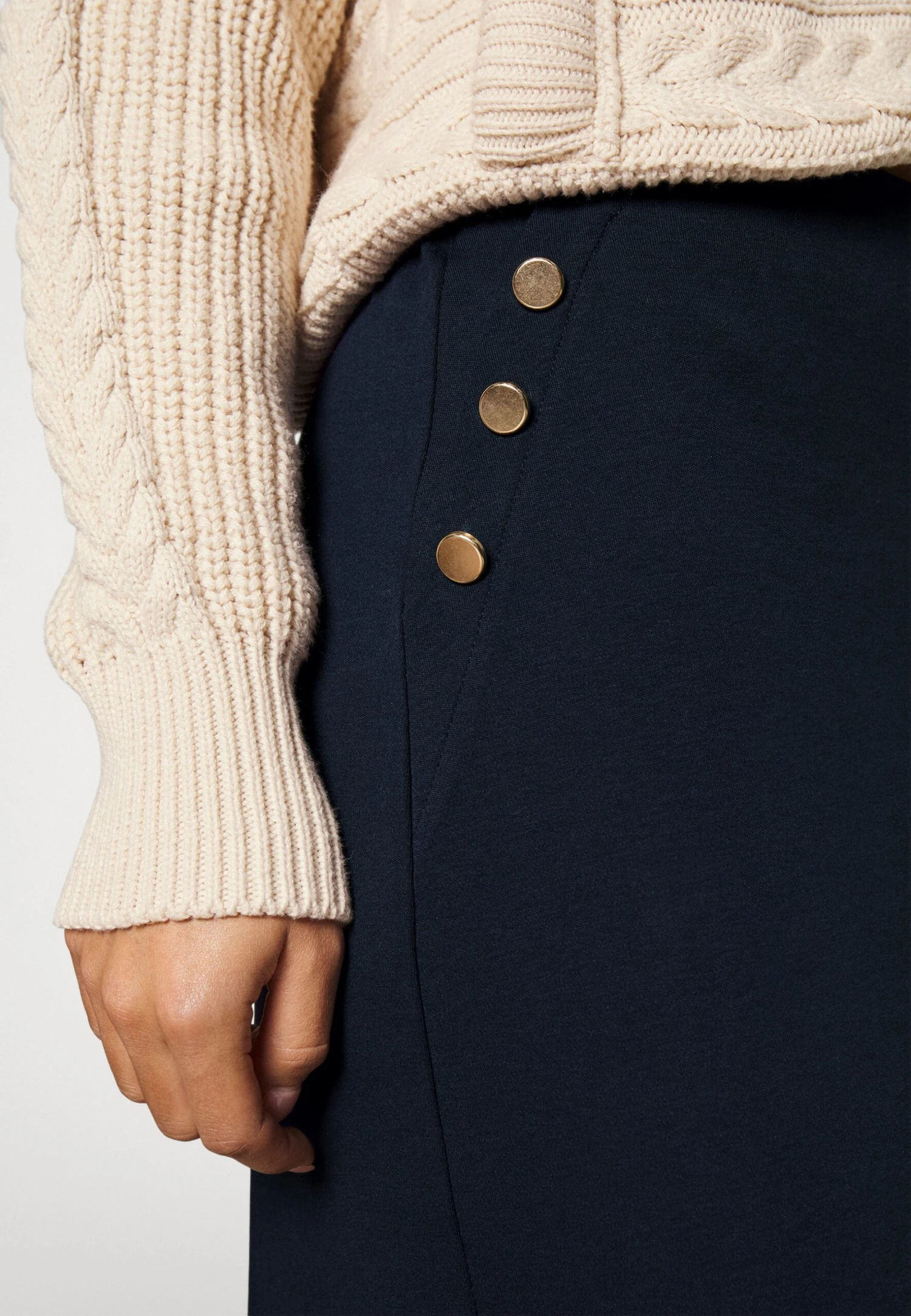 | Details | Elasticated waist, decorative buttons |